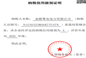 富源粵電電力有限公司連續(xù)三年蟬聯(lián)云南“十佳售電公司”稱號!