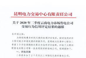 關(guān)于2020年二季度云南電力市場售電公司交易行為信用評定結(jié)果的通報